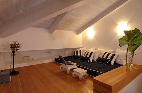 Trần nhà được đặt rất cao để tạo khoảng trống cho căn phòng.