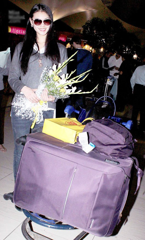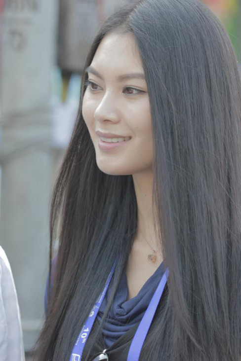 | Khuôn mặt rạng ngời và láng mịn của Vu Văn Hà khi tham gia vào các hoạt động ở Mumbai trong ngày hôm sau, lúc đã được make-up kỹ càng. |