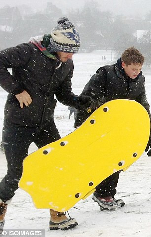 Vừa qua, Beckham đã đưa hai cậu con trai Brooklyn và Romeo đến khu trượt tuyết ở Primrose Hill để vui chơi. Beckham rất tận tình và chu đáo dạy con cách trượt tuyết.