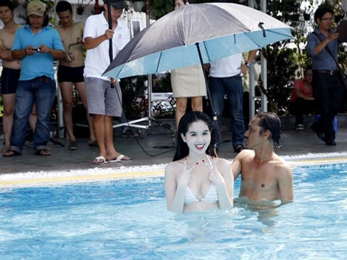 Đó là một cảnh quay tạo hiệu ứng tương phản, ông chủ trẻ Trương Nam Thành ngồi trên bể bơi, bên kia có hai người ở giới tính thứ ba, một góc khác có rất nhiều người đàn ông ngoại quốc da đen, và cô Ngọc Trinh da trắng ngần bước từ bể bơi xanh ngắt...