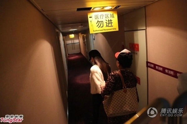 Sáng nay, hàng loạt các trang web của Trung Quốc đã đăng tải hình ảnh Can Lộ Lộ được mẹ đưa vào bệnh viện để phẫu thuật thẩm mỹ. Cô nàng đeo khẩu trang kín gần hết khuôn mặt và đi vào khu vực VIP của bệnh viện.