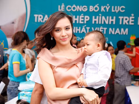 Xuất hiện tại sự kiện này, bà mẹ trẻ gây ấn tượng với mọi người bởi vẻ ngoài xinh đẹp và nụ cười thân thiện. Trong khi đó, do mới ốm dậy nên cậu quý tử Quốc Anh có vẻ kém tươi. Cậu bé luôn được mẹ dỗ dàng bằng những lời khen, cổ vũ để luôn mỉm cười khi các ống kính hướng về mình.