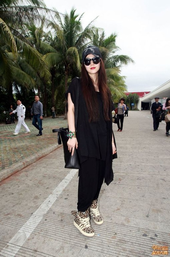 Tuy nhiên lần này Phạm Băng Băng lại không xuất hiện với phong cách gợi cảm, quyến rũ thường thấy mà thay vào đó, người đẹp họ Phạm lại diện một bộ cánh đen kịt đậm chất Hip Hop cùng một đôi giày họa tiết da báo cá tính.