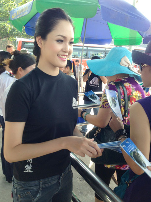 Lý do mà Á hậu Hoàng Anh lại có mặt ở bến tàu này là: “Tôi được tổ chức Động vật châu Á (Animals Asia) mời đến Quảng Ninh tham gia chiến dịch truyền thông nâng cao nhận thức cộng đồng bảo vệ gấu. Tôi cảm thấy vinh dự được tham gia vào chiến dịch này"