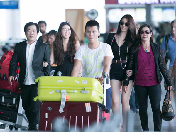 Tranh thủ chuyến công tác này, cô đã đưa cả gia đình gồm mẹ và vợ chồng chị gái sang du lịch Milan. Cuối tuần qua, cả gia đình Khánh My đã ra sân bay quốc tế TP HCM để lên đường đi du ngoạn.