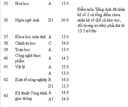 | 26 | Lâm nghiệp | D620201 | 40 | A | 13.0 | 4 | |