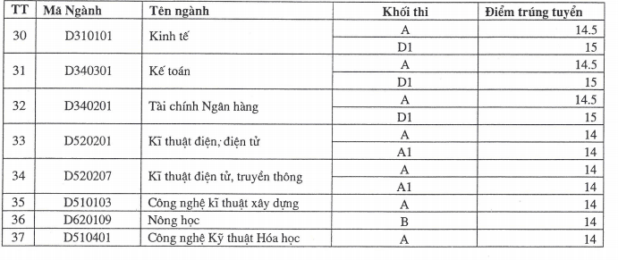 | 26 | Lâm nghiệp | D620201 | 40 | A | 13.0 | 30 | |