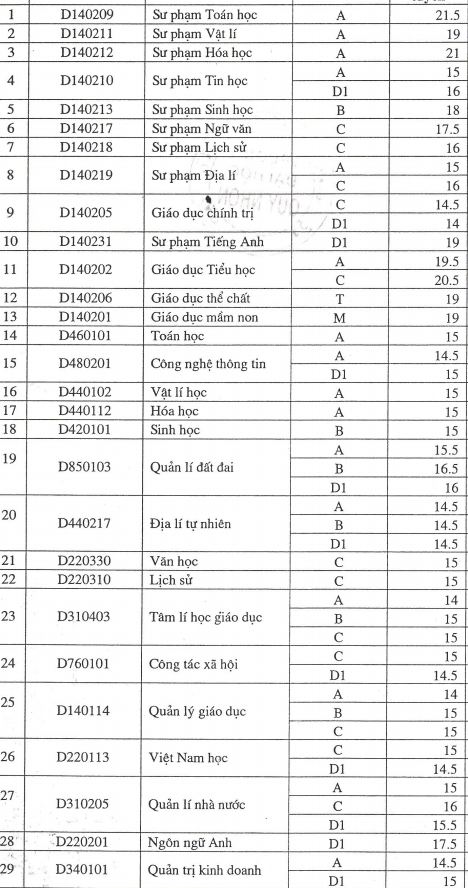 Trường ĐH Vinh đã công bố điểm trúng tuyển nguyện vọng 1. Theo đó, ngành có điểm chuẩn cao nhất là 20 - ngành Sư phạm Toán.