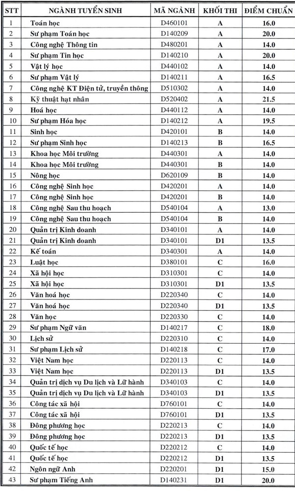 Sáng nay, ĐH Đà Lạt cũng vừa công bố điểm chuẩn vào trường như sau: