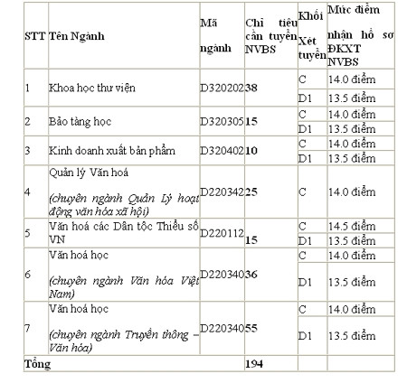 ĐH Văn hóa TPHC cũng vừa công bố điểm chuẩn.