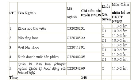 | - Việt Nam học | D220113 | C : 15.0 D1 : 15.0 |