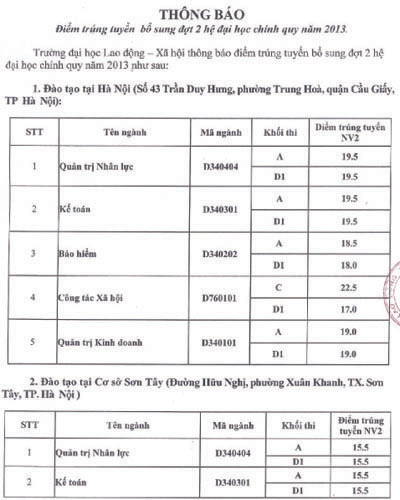 ĐH Lao động- Xã hội cũng vừa công bố điểm trúng tuyển xét tuyển bổ sung nguyện vọng 2 đợt 1 khá cao.