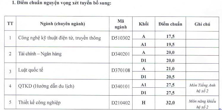 - Điểm trúng tuyển khối R là điểm đã nhân hệ số 1,5 với môn năng khiếu