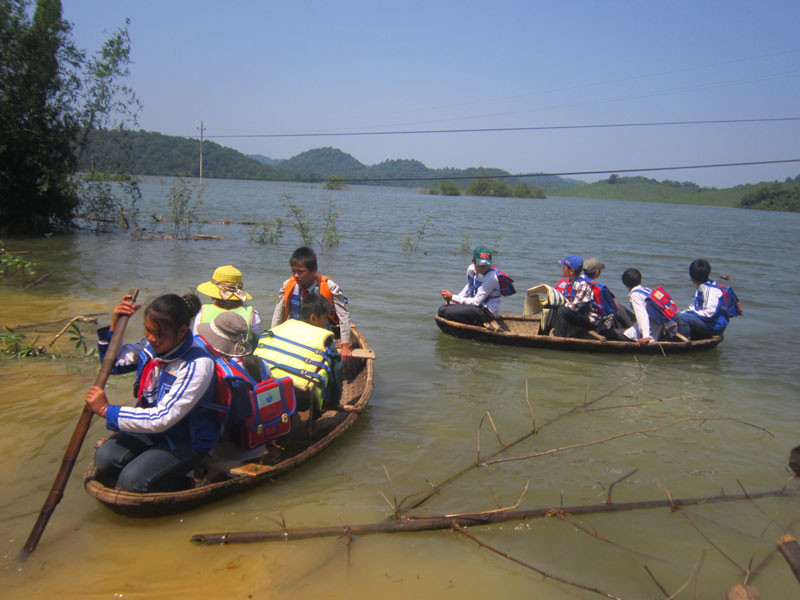 Cám cảnh học sinh miền núi chèo thuyền đi học