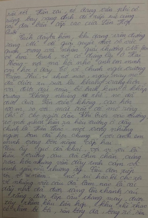 Theo thông tin từ ảnh chụp bài văn được lan truyền, tác giả tên Vũ Trường Ân, là học sinh lớp 9. Tuy chưa rõ trường nơi nam sinh này theo học nhưng bài văn với trí tưởng tượng phong phú nhanh chóng được cộng đồng mạng chuyền tay với hàng ngàn lượt thích.