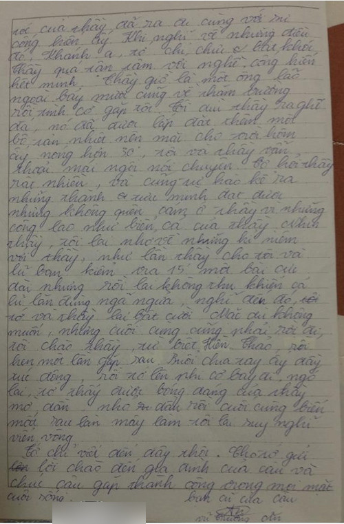 Thầy quá tận tâm với nghề, cống hiến hết mình. Thầy giờ là một ông lão ngoài bảy mươi cũng về thăm trường rồi tình cờ gặp tôi...
