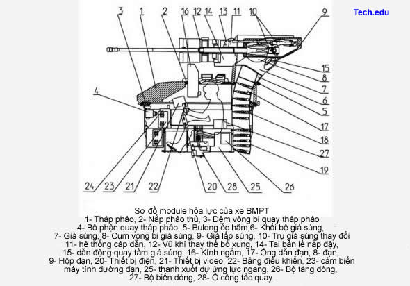 Thực tế chiến trường hiện đại cho thấy số lượng trang bị, vũ khí chống tăng rất cao và càng ngày càng tăng, trên xe BMPT cũng như các xe tăng hiện đại khác, được lắp đặt thiết bị tạo khói mùi bằng đạn khói (SPZ), màn khói tạo ra có khả năng gây nhiễu cho tên lửa có đầu dẫn bán chủ động laser, hoạt động trên cơ sở phản xạ laser từ vật bị chiếu đến đầu tự dẫn (kiểu tên lửa Maverick, Helffire), các đầu đạn pháo sử dụng thiết bị tự dẫn ( kiểu Copperhead)sử dụng tín hiệu laser phát từ thiết bị đo khoản cách và chỉ thị mục tiêu với nguồn chiếu xạ laser là nguồn phát laser trên các kính ngắm và đo xa, đồng thời che dấu xe thiết giáp bằng màn khói azot. Xe có thể được lắp đặt hệ thống phát hiện chiếu xạ laser Droze hoặc hệ thống phòng thủ Arena. Cả hai hệ thống đều cho phép phát hiện nhanh xạ thủ bắn tên lửa chống tăng hoặc súng phóng lựu và tiêu diệt mục tiêu.