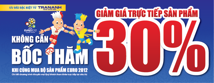 Gói khuyến mãi lớn chưa từng có cho 8 sản phẩm vòng loại Euro 2012, trong đó khách hàng sẽ được giảm giá trực tiếp 30% không cần bốc thăm. Cụ thể bộ sản phẩm vòng loại Euro gồm: