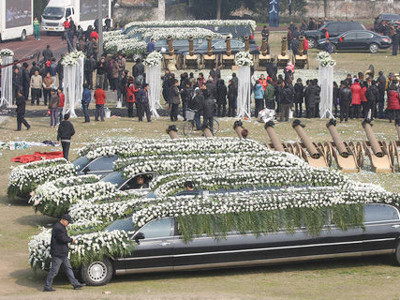 Hàng ngàn người ở thành phố Ôn Lĩnh, trong đó không ít do hiếu kỳ, thứ sáu tuần trước, dự đám tang với 8 chiếc limousine hiệu Lincoln bóng loáng phủ đầy hoa trắng.