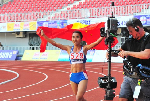 | Hình ảnh Phạm Thị Bình ăn mừng huy chương vàng - tấm HCV đầu tiên của điền kinh Việt Nam và là HCV thứ 37 của đoàn thể thao Việt Nam tính tới thời điểm này. So với tấm HCĐ cách đây 2 năm ở Indonesia, Bình đã cải thiện thành tích khó tin, từ 2 giờ 48 phút 43 giây xuống còn 2 giờ 45 phút 34 giây. Phạm Thị Bình là VĐV rất đặc biệt của thể thao Việt Nam. Cô chỉ chạy chân trần và từng có tiền sử bệnh tim (xem chi tiết).