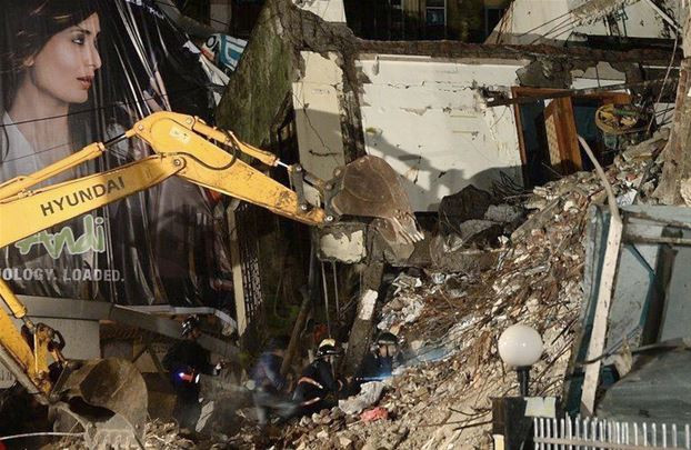 | Cảnh sát không biết rõ có bao nhiêu người đang bị chôn vùi trong đống nổ nát. |