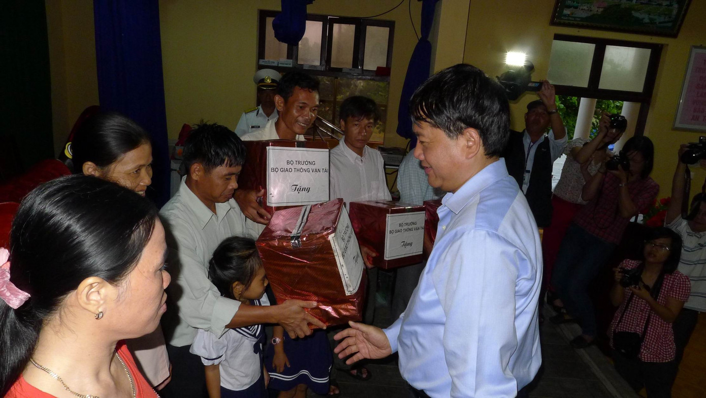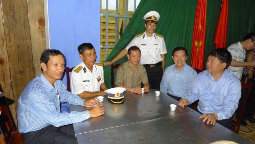 Ngoài những hoạt đông kiểm tra công tác đảm bảo an toàn hàng hải, Bộ trưởng Đinh La Thăng tới động viên, thăm hỏi cán bộ chiến sỹ và người dân đang làm nhiệm vụ, sinh sống nơi đây.