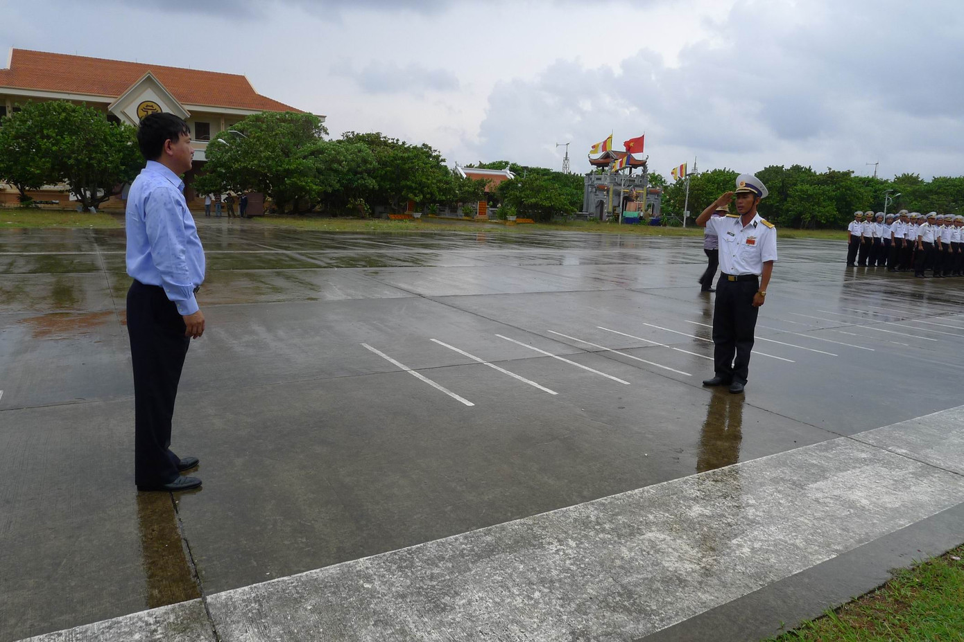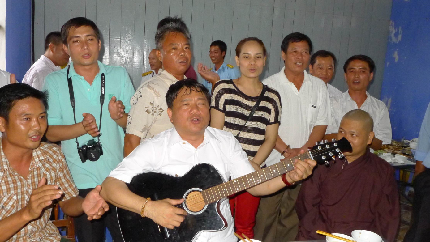 Cả ngày 5-5, trời mưa, gió lớn, Bộ trưởng Đinh La Thăng ôm đàn ghi-ta cùng các cán bộ chiến sỹ Trường Sa hát cho hoàng hôn xuống, hát cho mặt trời lên (lời bài hát Cây đàn ghi ta một dây).