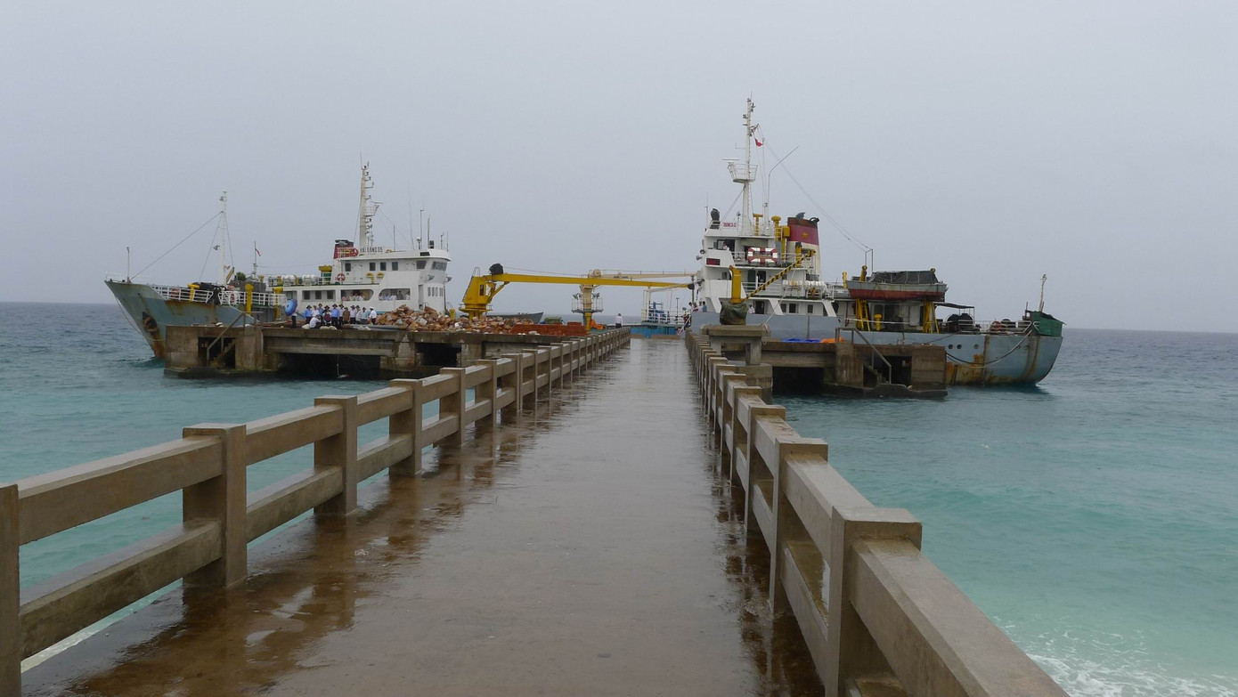 Các tàu hải quân và tàu tiếp tế dân sự vẫn thường xuyên cập cảng Trường Sa Lớn với những hồi còi vui tai.
