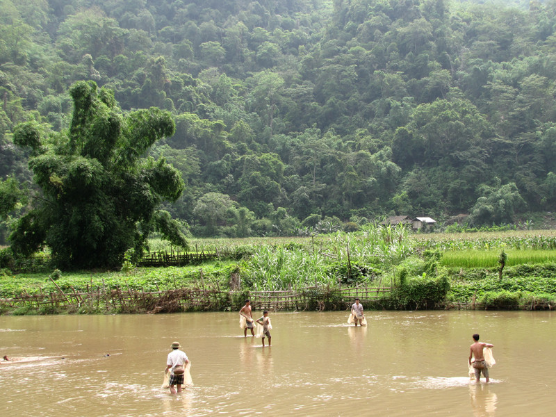 | Tận dụng những bãi đất trũng quanh Hồ Ba Bể để trồng trọt, chăn nuôi. |