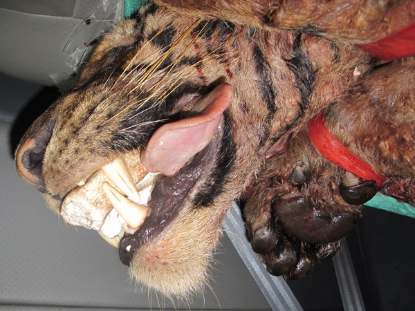 | Toàn bộ xác con hổ được thu giữ . |