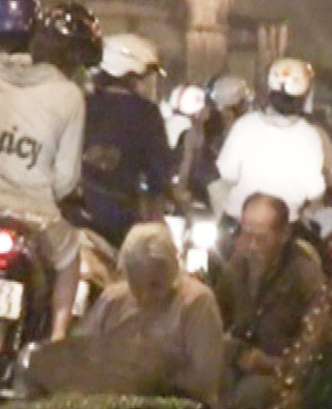 Tối 19-10, tại chốt đèn giao thông ngã tư Vườn Mít (phường Tân Tiến, TP Biên Hòa), chúng tôi phát hiện hai người già với bộ dạng nhếch nhác, tiều tụy ngồi ngửa nón xin tiền. Nhiều người đi đường thương hại đã dừng xe móc hầu bao.