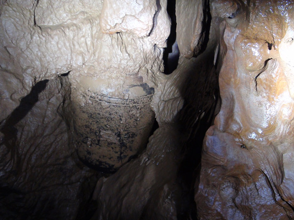 | chiếc chum sành trong hang động Phong Nha. |