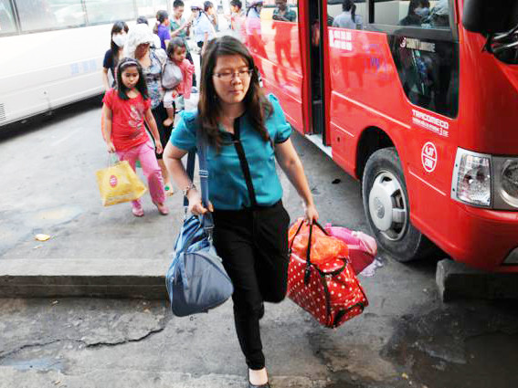 | Kỳ nghỉ kéo dài nên ai nấy đều tranh thủ lên xe từ sớm. |