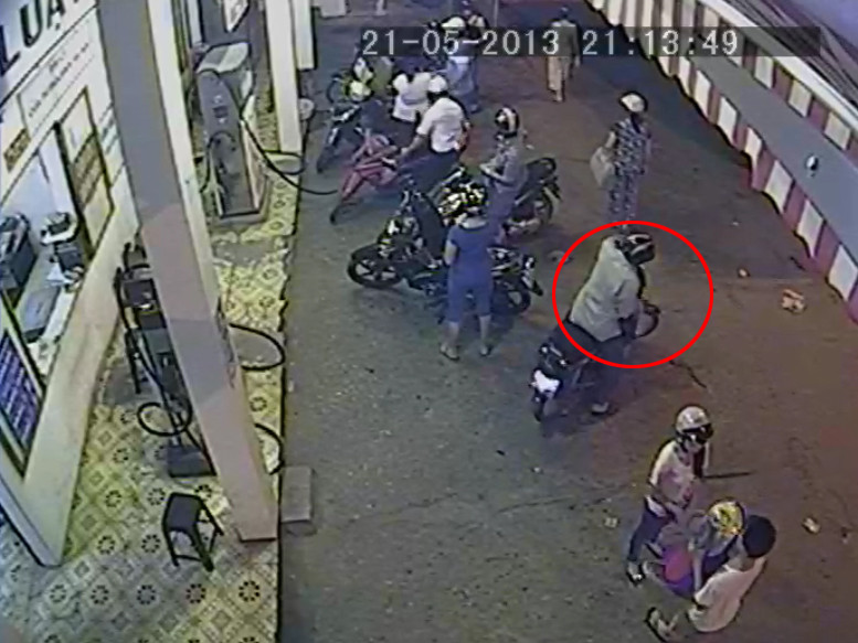 Theo ông Minh Hoàng, người bị mất tài sản, sự việc xảy ra khoảng 21h ngày 21/5/2013, tại cửa hàng xăng dầu 71 Nguyễn Công Trứ, quận Hai Bà Trưng, Hà Nội.
