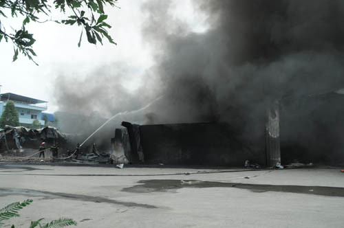 Đến 11h30, đám cháy được khống chế. Tại hiện trường, gần 9.000m2 nhà xưởng cùng máy móc bên trong cháy hoàn toàn. Rất may, không có thiệt hại về người.