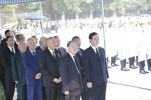 Thủ tướng Chính phủ Nguyễn Tấn Dũng dẫn đầu đoàn Chính phủ vào viếng. Cùng đi có nguyên Thủ tướng Phan Văn Khải. (XEM THÊM ẢNH TẠI ĐÂY)