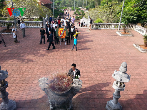 Phó Tổng biên tập báo Tiền Phong Trần Thanh Lâm (bến trái) và Đoàn báo Tiền Phong, Công ty Cổ phần Sữa Việt Nam viếng Đại tướng tại Quảng Bình
