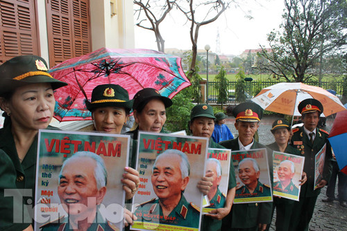 | Rất đông người xếp hàng vào viếng Đại tướng. |