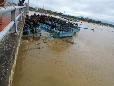 Khoảng 5 giờ ngày 7/11, người dân phát hiện 6 sà lan và 2 chiếc ghe bị mắc kẹt tại gầm cầu Thành.
