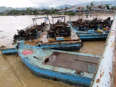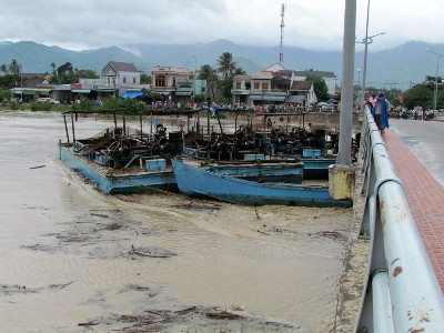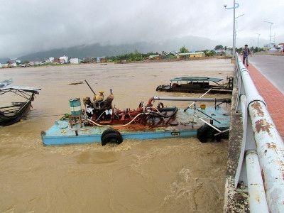 TPO - Các lực lượng chức năng đang tìm cách cứu 6 sà lan và hai ghe bị mắc kẹt ở cầu Thành (mới), thị trấn Diên Khánh, Khánh Hòa. Ông Lương Văn Sáu, Phó Chủ tịch UBND huyện Diên Khánh cho biết.