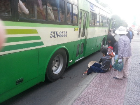Khi đến trạm xe buýt cách cầu Thị Nghè khoảng 200 mét, cụ bà cùng đứa cháu buốc xuống xe. Không may khi cụ vừa xuống xe thì bị chính chiếc xe buýt này cán ngang qua bàn chân.