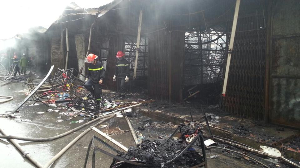 Vụ cháy xảy ra vào khoảng hơn 6h 16/12, tại khu chợ Nhà Xanh, phố Phan Văn Trường, phường Dịch Vọng Hậu, quận Cầu Giấy (Hà Nội)