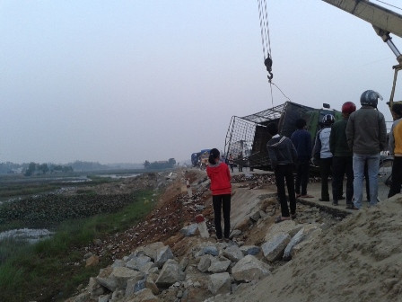 Được biết chiếc xe tải BKS 18T - 0795 chở gần một ngàn thùng bia chạy theo hướng Hà Tĩnh - TP Vinh (Nghệ An). Đến đoạn đường trên chiếc xe tải chao đảo rồi lật nhào xuống mặt đường, hàng trăm chai bia vỡ vụn.