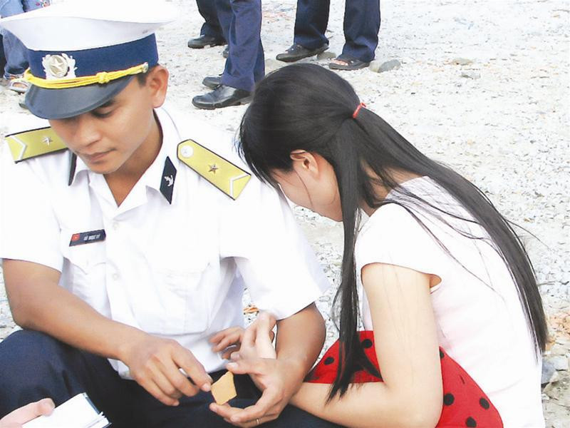 Đại úy Bùi Phi Long ra công tác tại đảo Đá Đông. Anh sẽ không cùng vợ Nguyễn Thị Bích Thảo và con gái Bùi Vân Anh, 30 tháng tuổi đón Tết này, và có thể cả Tết sau. Nhưng cũng có những người lính khác được anh và đồng đội thay thế để về đất liền sum họp gia đình khi Xuân sang.