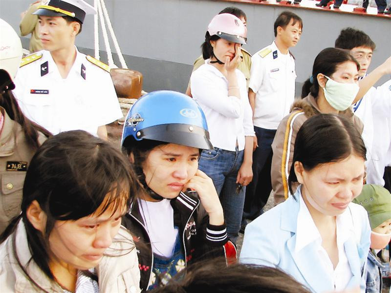 Tàu đã xa nhưng trên bờ, những người vợ, người yêu, những đứa con của họ vẫn dõi theo.