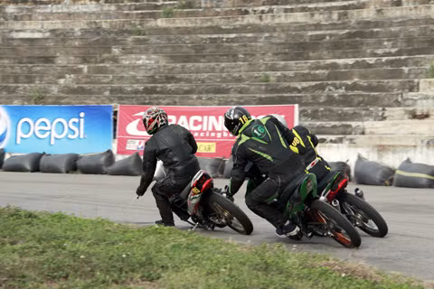 Đè mạnh xe sang bên cần ôm cua để xe nghiêng một góc lớn, đồng thời giữ người nghiêng ít hơn xe để lấy cân bằng.