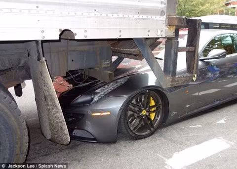 Người lái chiếc xe tải chở hàng của hãng Baldor Foods, khẳng định với người xung quanh là "không nhìn thấy gì" khi lùi lại. Trong khi đó, nắp capô của chiếc siêu xe Ferrari FF bị đè bẹp. Đầu chiếc siêu xe bị ấn xuống, nằm sát mặt đường.