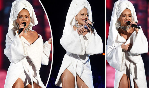 Rita Ora gây "choáng" khi cuốn khăn tắm từ đầu đến chân tới dự và dẫn chương trình MTV EMAs.