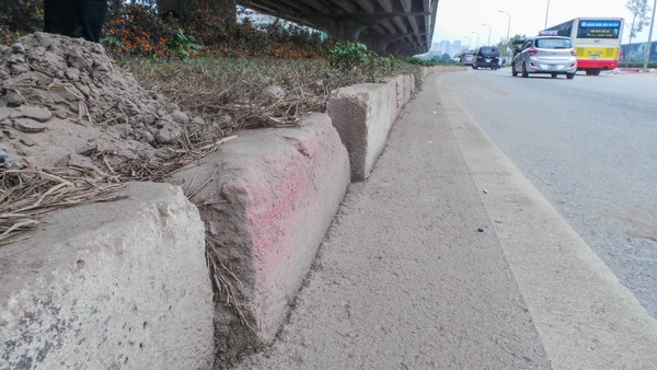 Bậc dải phân cách xuống cấp một cách trầm trọng.