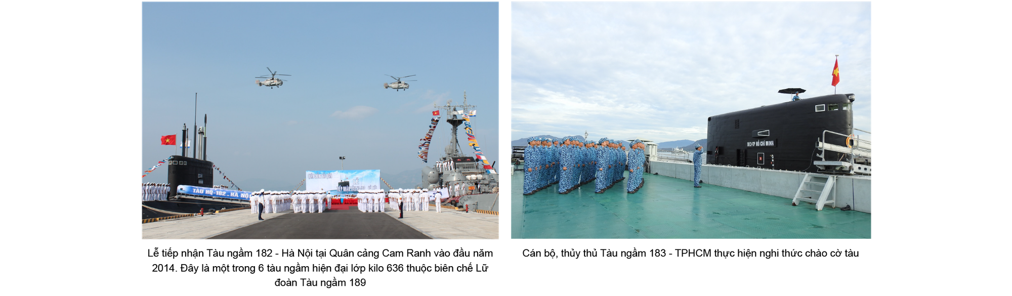 | Hai tàu ngầm 182 - Hà Nội và 183 - TPHCM tham gia duyệt đội hình tàu ngầm trong Lễ kỷ niệm 60 năm thành lập Hải quân nhân dân Việt Nam (tháng 5/2015) |